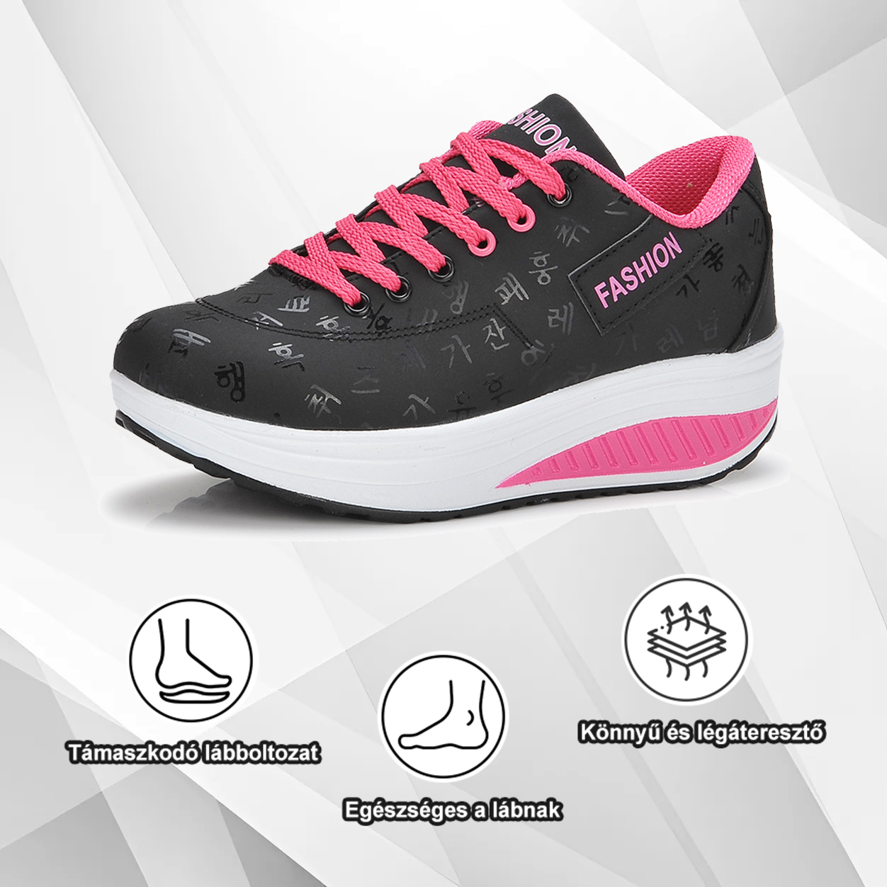 â CsípĆtámasz: Ez a cipĆ enyhíti a sarokra és a lábfejre nehezedĆ nyomást, egyensúlyt és csillapító felületet biztosít a mozgáshoz. Hatékony a sérülések kezelésében és a jövĆbeli lábproblémák megelĆzésében .