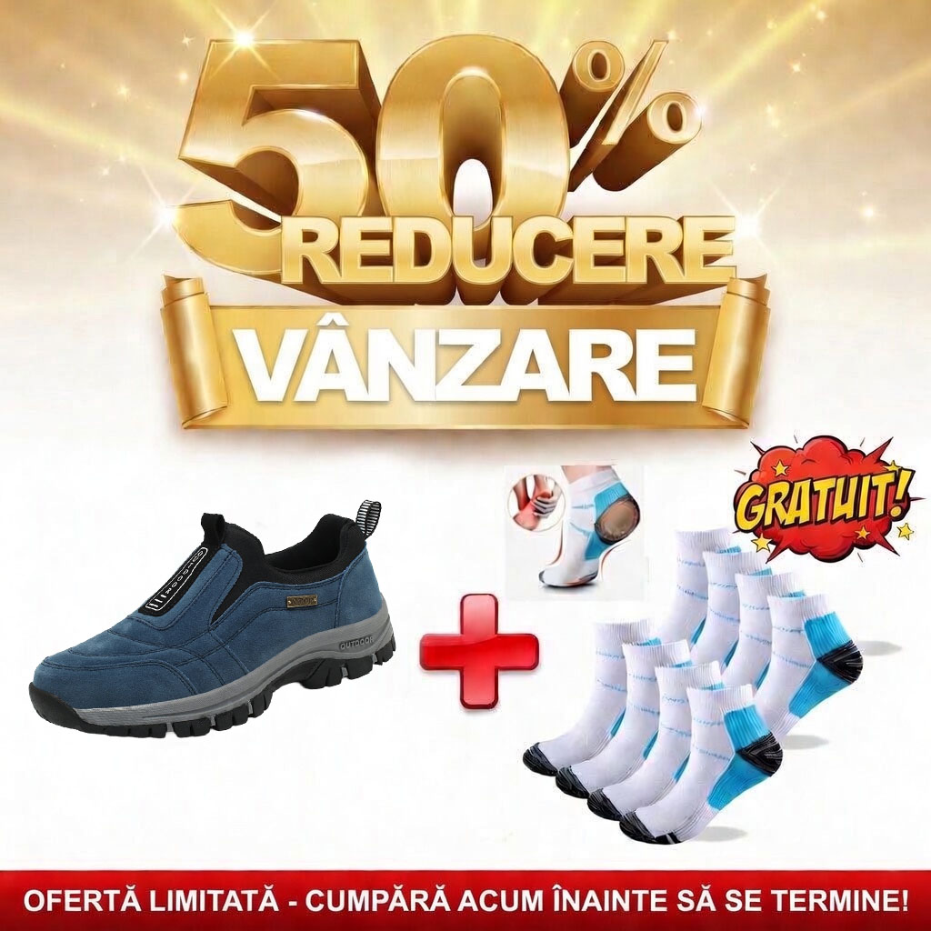 ✅ Clienții care plasează o comandă astăzi vor primi gratuit o pereche de ciorapi ortopedici premium (pentru ameliorarea durerilor de picioare) în valoare de 89 RON.