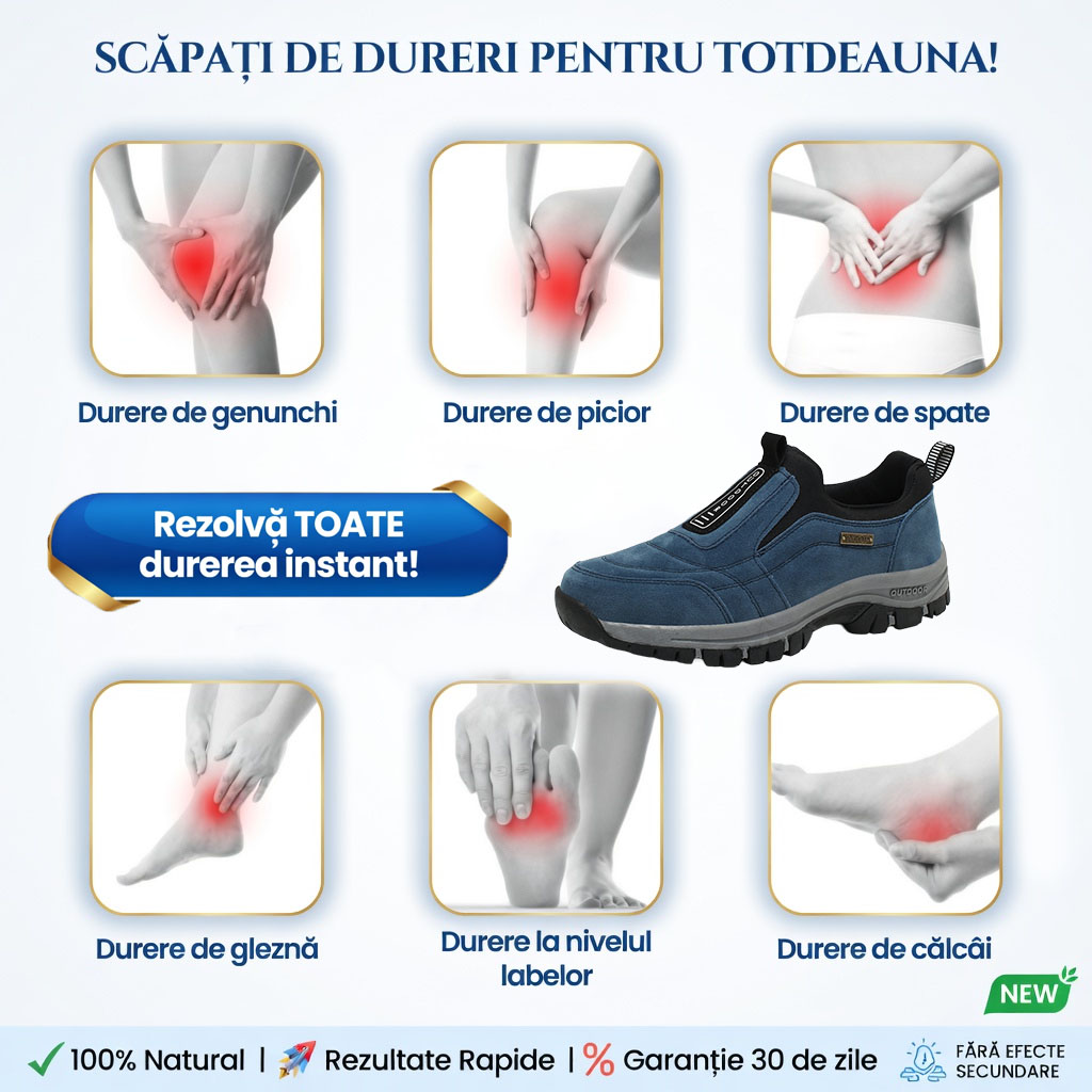 Pantofii noștri răspund unei varietăți de nevoi și oferă confort maxim. Sunt potriviți în special pentru persoanele cu diverse afecțiuni ale picioarelor și articulațiilor. Iată câteva dintre cele mai frecvente simptome pe care pantofii noștri le pot ameliora: